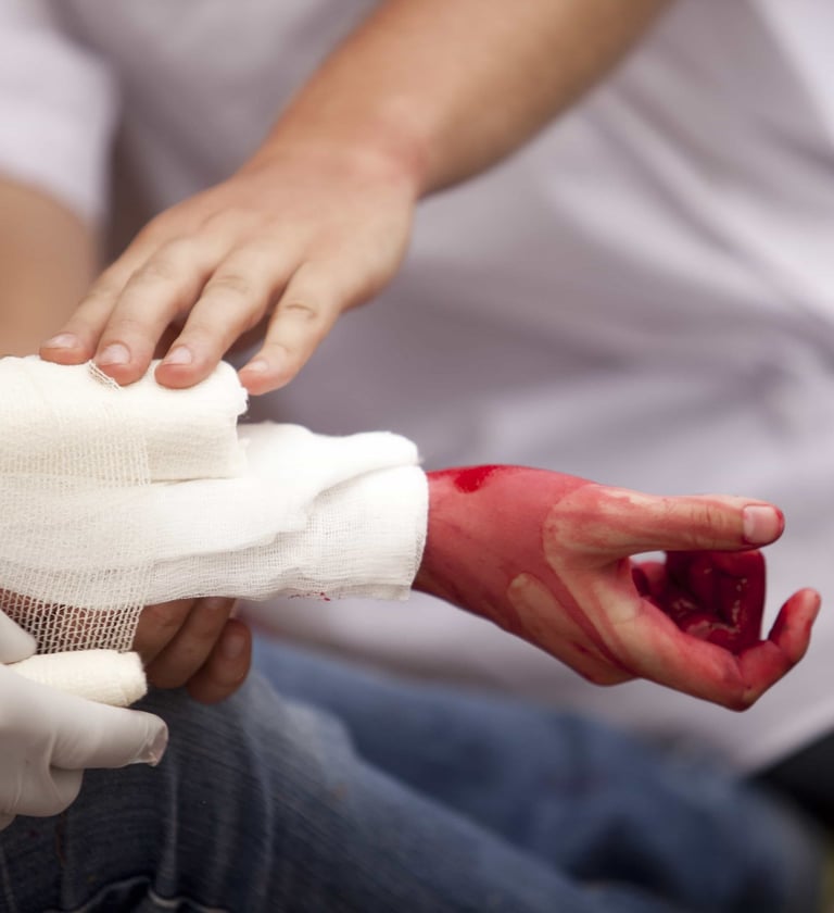 Is bleeding, including life-threatening situations and the use of haemostatic dressings and tourniquets